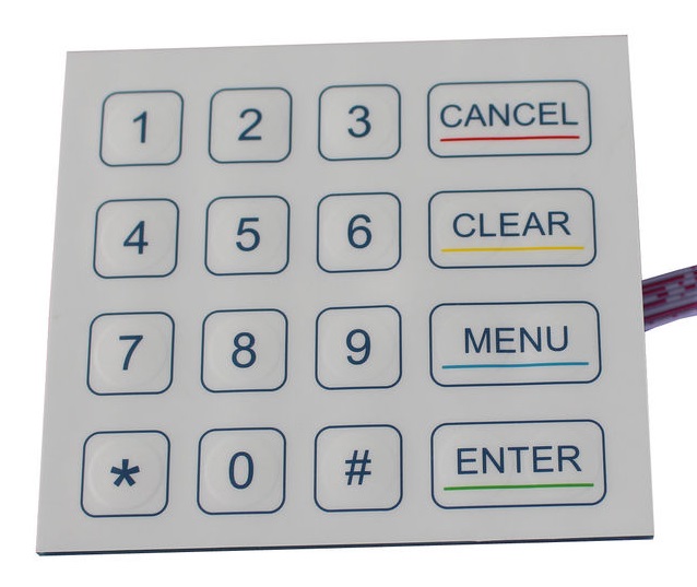 K-TEK-D100KP-16-ACМатричная мембранная влагозащищённая металлическая клавиатура, 16 клавиш, белого цвета, без контроллера