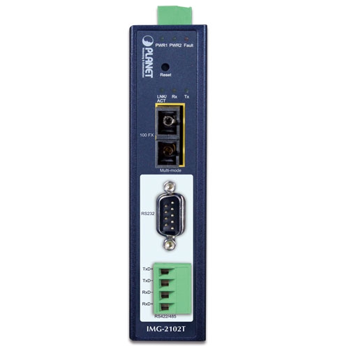 Planet IMG-2102TSПромышленный 1-портовый преобразователь Modbus RTU/ASCII (RS-232/422/485) в Modbus TCP/IP 1 x 100BASE-FX SC Single mode 30км, питание 9...48В DC / 24В AC с резервированием, IP30, расширенный диапазон температур -40...75