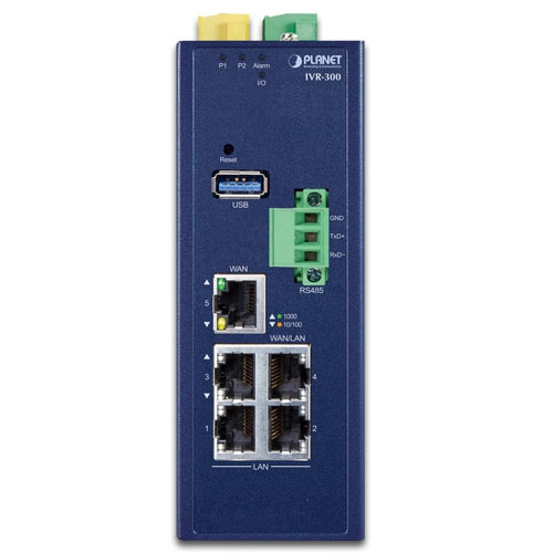 Planet IVR-300Промышленный VPN шлюз, 5 портов 10/100/1000BASE-T, питание 9...54В DC, защита IP30, расширенный диапазон температур -40...75