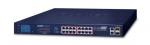 Неуправляемый коммутатор L2+, 16 портов 10/100/1000T 802.3at PoE + 2 порта 10/100/1000T + 2 порта 1000X SFP, питание 220В AC, монтаж на плоскость или в стойку 19", общая мощность POE 185Вт