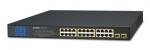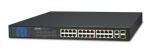 Неуправляемый коммутатор, 24 x 10/100/1000T 802.3at POE, 2 x 1000X SFP, монтаж в стойку 19"