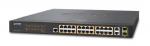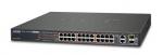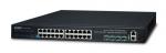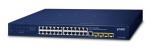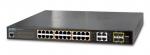 GS-5220-24PL4XR Управляемый коммутатор L2+, 24-Port 10/100/1000T c 802.3at PoE + 4-Port 10G SFP, питание с резервированием 36~60В DC / 220В AC, монтаж в стойку 19", общая мощность POE 600Вт