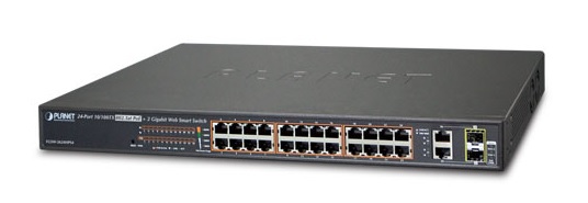 Planet FGSW-2624HPS4 Управляемый коммутатор, 24 порта 10/100TX 802.3at PoE + 2 порта Gigabit TP/SFP совмещены с 2-мя 10/100/1000Base-T RJ45, монтаж в стойку 19"