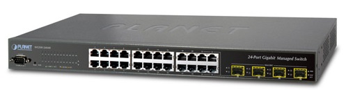 Planet WGSW-24040R Управляемый коммутатор, 24-port 10/100/1000BASE-T RJ45, 4-port 100/1000BASE-X mini-GBIC/SFP slots, 1xRS232, питание с резервированием 220В AC/ 48В DC, изоляция 6KV DC, монтаж в стойку 19"