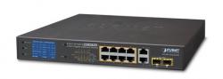 Planet FGSD-1022VHP Неуправляемый коммутатор, 8 портов 10/100TX 802.3at PoE + 2 порта Gigabit TP/SFP combo, ЖК дисплей, питание 220В AC, общая мощность POE 120Вт
