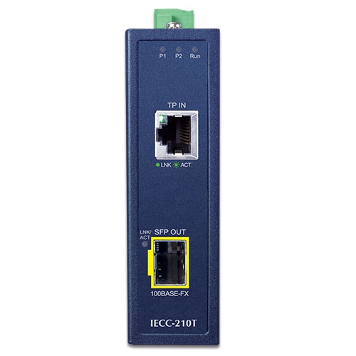Planet IECC-210TПромышленный медиаконвертер EtherCAT 1 x 100TX RJ45, 1 x 100FX SFP - Out, расширенный диапазон температур -40...75, питание 9...48 DC с резервированием, IP30
