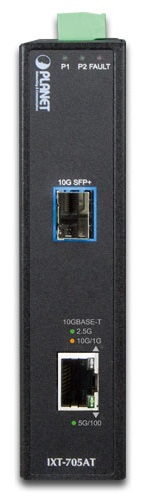 Planet IXT-705ATПромышленный медиаконвертер 10G/5G/2.5G/1G/100M в 10GBASE-X SFP+, питание 12В...48В или 24В DC