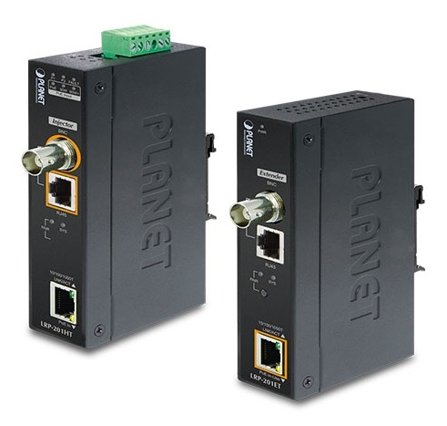 Planet LRP-201-KITПромышленный удлинитель Ethernet, 1-Port 10/100/1000T Ultra PoE + 1-Port Coax/UTP, комплект из двух устройств LRP-201ET + LRP-201HT, передача данных до 600м через Coaxial кабель, расширенный диапазон температур - 20...+70, IP30, питание 44...54В DC