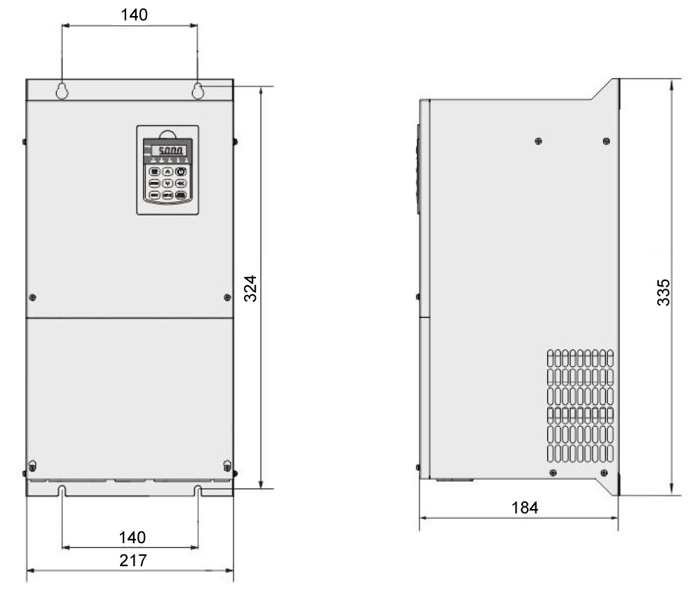 ES300-4T18.5G/22P Преобразователь частоты: номинальная мощность двигателя: 18,5/22 кВт, вход: 3 x 380 В 50/60 Гц; выход: 3 x 380 В, номинальный выходной ток 37/45 A; перегрузка: 120/150% 60c, 150/180% 3c
