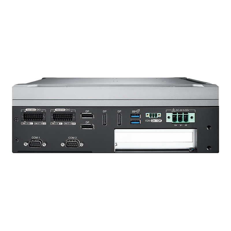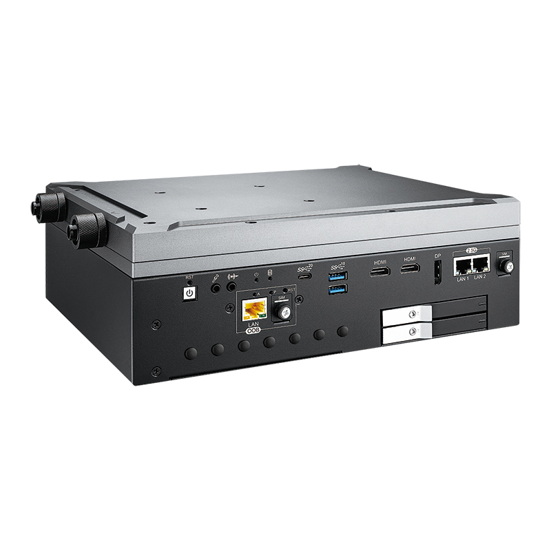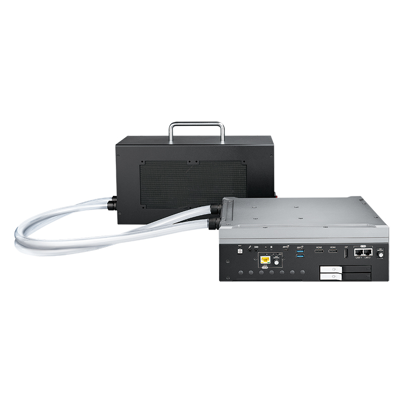 Безвентиляторный встраиваемый компьютер (Intel Core i3/i5/i7/i9 12/13/14th Gen (Raptor Lake-S) Socket 1700, Intel R680E Chipset, видеоконтроллер Intel UHD Graphics 770/730 с возможностью подключения 7 дисплеев: 2хHDMI с разрешением 4096x2304, 1хDP с разрешением 3840x2160, 4хDP с разрешением 7680x4320 (при использовании дискретной видеокарты MXM); 2xGLAN, порт внешнего управления Ethernet LAN 10/100 (RJ45), 5xUSB, 2xRS232/422/485, 32xDIO с изоляцией, аудиоконтроллер Realtek ALC888S-VD (микрофонный вход, линейный выход), 2xSATAIII (RAID) + 3xM.2, 1xSIM, 2 DDR5 5600MHz SO-DIMM, 1 слот PCI-E x16 (с сигналами x8), 2 корзины для накопителей 2.5", питание 9...55 В DC, жидкостное охлаждение обеспечивает температуру от 5°C до 65 °C без использования вентилятора)