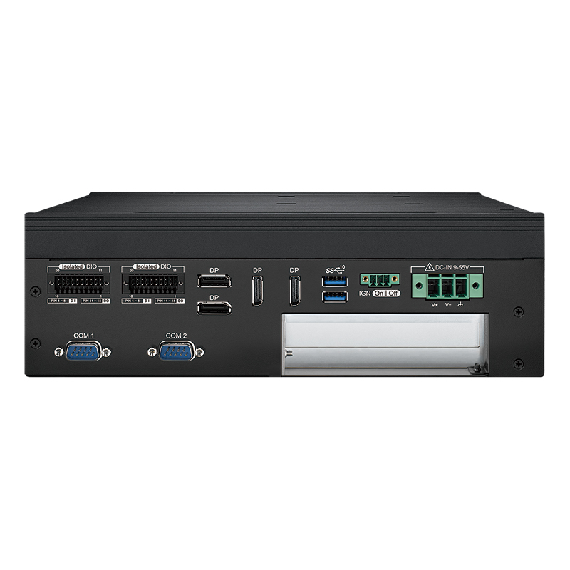 EVS-3100F Встраиваемый компьютер (Intel Core i3/i5/i7/i9 12/13/14th Gen (Raptor Lake-S) Socket 1700, Intel R680E Chipset, видеоконтроллер Intel UHD Graphics 770/730 с возможностью подключения 7 дисплеев: 2хHDMI с разрешением 4096x2304, 1хDP с разрешением 3840x2160, 4хDP с разрешением 7680x4320 (при использовании дискретной видеокарты MXM); 2xGLAN, порт внешнего управления Ethernet LAN 10/100 (RJ45), 5xUSB, 2xRS232/422/485, 32xDIO с изоляцией, аудиоконтроллер Realtek ALC888S-VD (микрофонный вход, линейный выход), 2xSATAIII (RAID) + 3xM.2, 1xSIM, 2 DDR5 5600MHz SO-DIMM, 1 слот PCI-E x16 (с сигналами x8), 2 корзины для накопителей 2.5", питание 9...55 В DC, расширенный диапазон температур -25...+45)