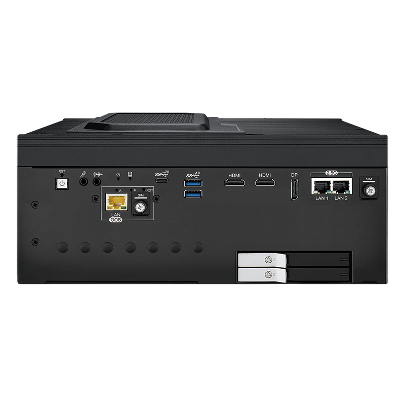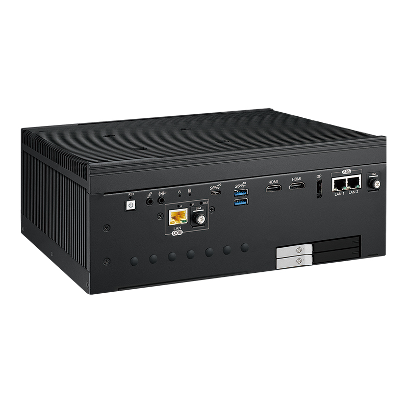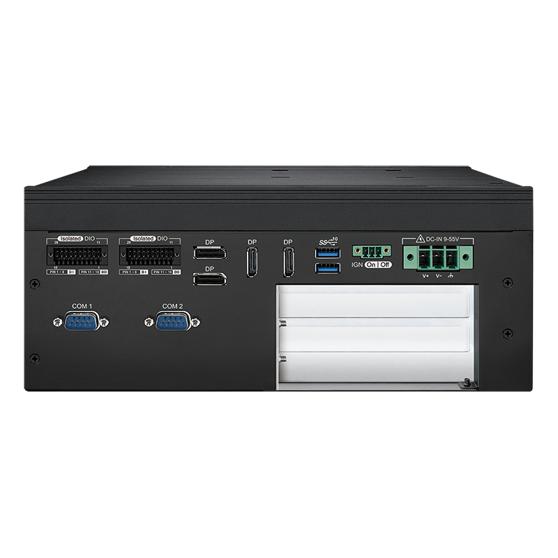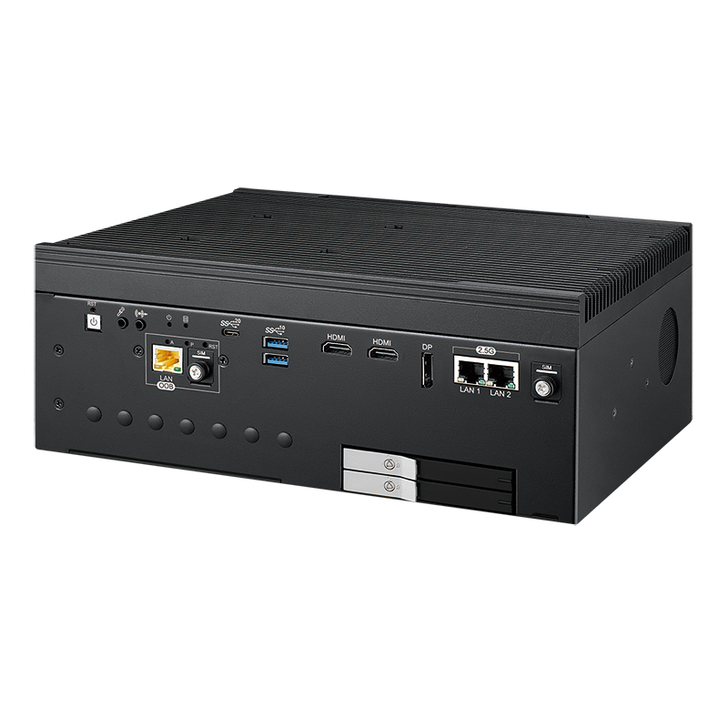 EVS-3200 Безвентиляторный встраиваемый компьютер (Intel Core i3/i5/i7/i9 12/13/14th Gen (Raptor Lake-S) Socket 1700, Intel R680E Chipset, видеоконтроллер Intel UHD Graphics 770/730 с возможностью подключения 7 дисплеев: 2хHDMI с разрешением 4096x2304, 1хDP с разрешением 3840x2160, 4хDP с разрешением 7680x4320 (при использовании дискретной видеокарты MXM); 2xGLAN, порт внешнего управления Ethernet LAN 10/100 (RJ45), 5xUSB, 2xRS232/422/485, 32xDIO с изоляцией, аудиоконтроллер Realtek ALC888S-VD (микрофонный вход, линейный выход), 2xSATAIII (RAID) + 3xM.2, 1xSIM, 2 DDR5 5600MHz SO-DIMM, 1 слот PCI-E x16 (с сигналами x8), 1 слота PCI-E x16 (с сигналами x4), 2 корзины для накопителей 2.5", питание 9...55 В DC, расширенный диапазон температур -25...+45)