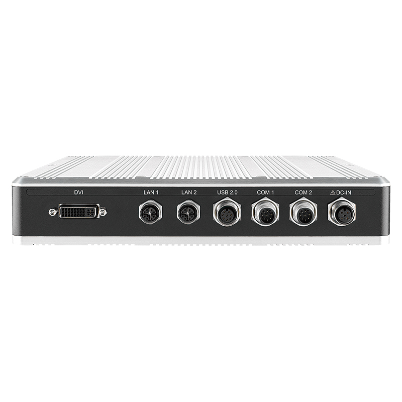| Разъемы на задней панели | DVI-D, DP, X-coded M12 (2xGLAN), A-coded M12 (2xRS232/422/485), A-coded M12 (2xUSB2.0), A-coded M12 (DC-In) |