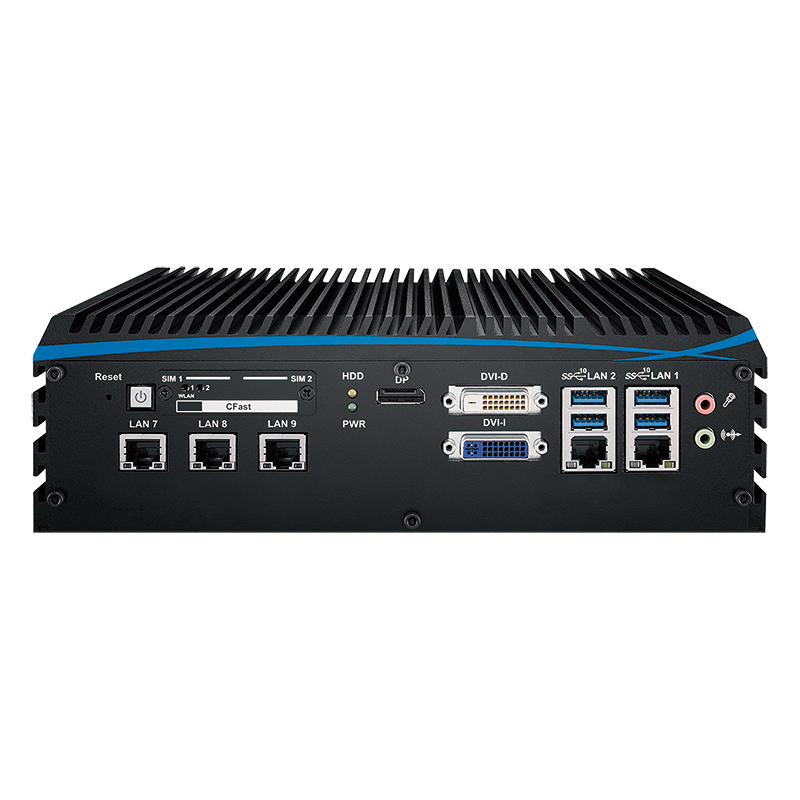 ECX-1000-9GD Безвентиляторный встраиваемый компьютер (Intel XEON / Core i7/i5/i3 Processors 8-gen (Coffee Lake-S) Socket 1151, Display Port, DVI-I, DVI-D, 9xGLAN (4 с POE 802.3at), 6xUSB3.1 1xUSB2.0 внутренний, 4xRS232/422/485 (ESD 8KV), 2xSATA (RAID 0,1), 2x mSATA, M.2 Key M Socket, 2xSIM, CFast, 2 слота MiniPCIe, 16 DIO с изоляцией, 2 корзины для накопителей 2.5", питание 6...36В DC, расширенный диапазон температур -40...+75)