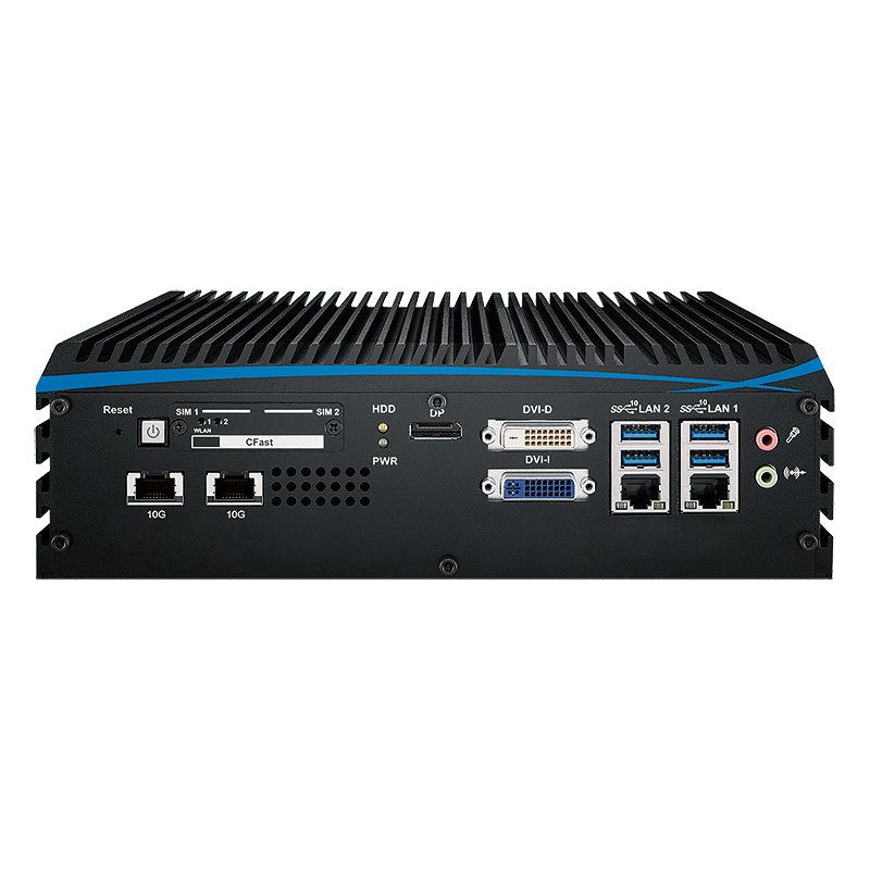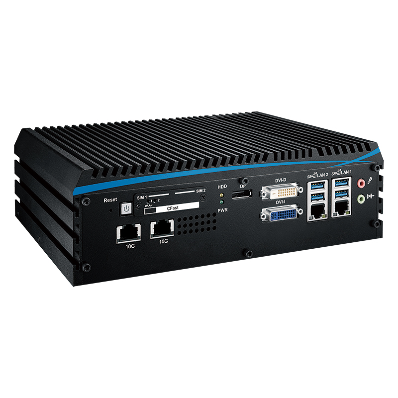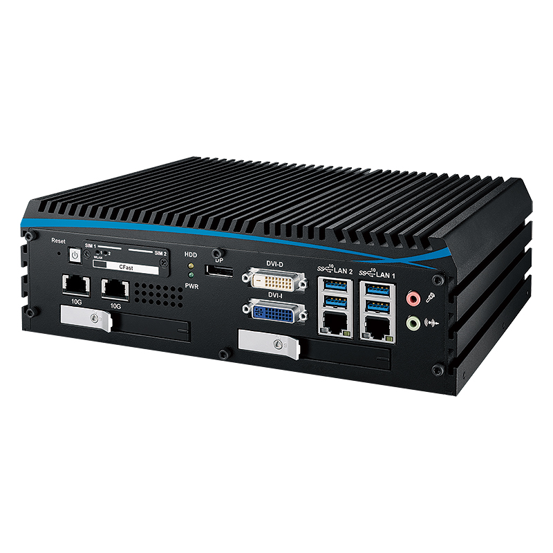 ECX-1055 Безвентиляторный встраиваемый компьютер (Intel XEON / Core i7/i5/i3 Processors 8-gen (Coffee Lake-S) Socket 1151, Display Port, DVI-I, DVI-D, 6xGLAN (4 с POE IEEE 802.3at) + 2x10G (RJ45), 6xUSB3.1 1xUSB2.0 внутренний, 4xRS232/422/485 (ESD 8KV), 2xSATA (RAID 0,1), 2x mSATA, M.2 Key M Socket, 2xSIM, CFast, 2 слота MiniPCIe, 16 DIO с изоляцией, 2 корзины для накопителей 2.5", питание 6...36В DC, расширенный диапазон температур -40...+75)