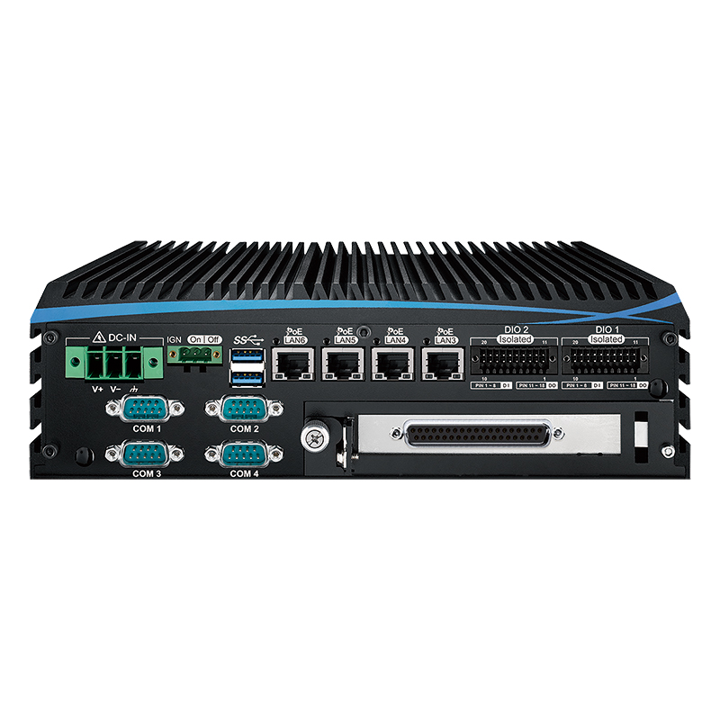 ECX-1200-AIO Встраиваемый компьютер (Intel XEON / Core i7/i5/i3 Processors 8-gen (Coffee Lake-S) Socket 1151, VGA, DVI-D, 2xDisplay Port, 6xGLAN (4 из них с IEEE 802.3at PoE+), 6xUSB3.1 + 1xUSB2.0 внутренний, 4xRS232/422/485 (ESD 8KV), 2xSATA (RAID 0,1), 2x mSATA, M.2 Key B Socket, M.2 Key M socket, 3xSIM, CFast, 2 слота MiniPCIe, 16 GPIO, 2 корзины для накопителей 2.5" с горячей заменой, питание 6...36В DC, 32 аналоговых входа, 2 аналоговых выхода)