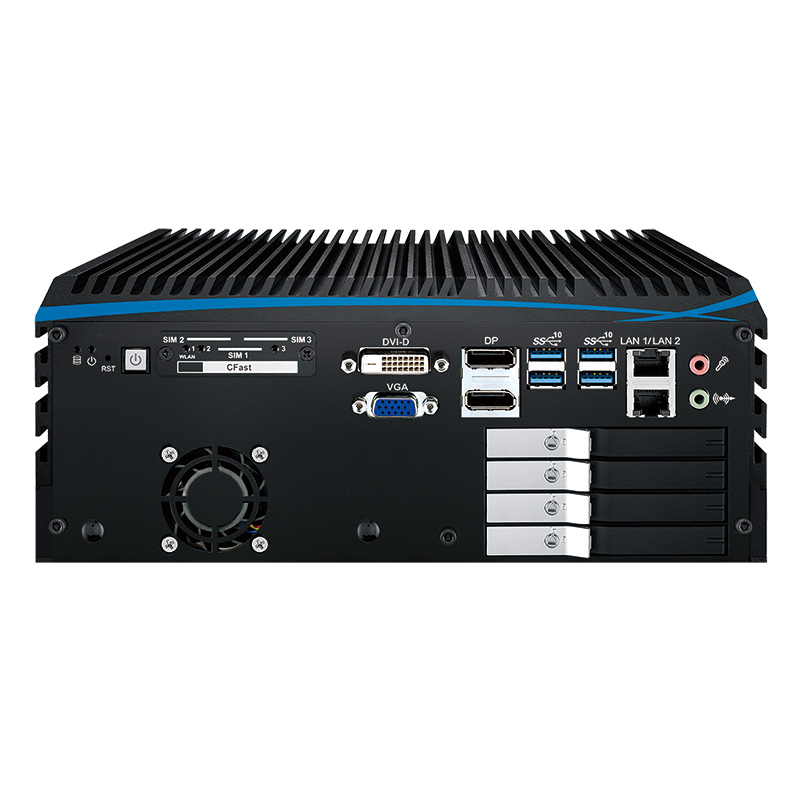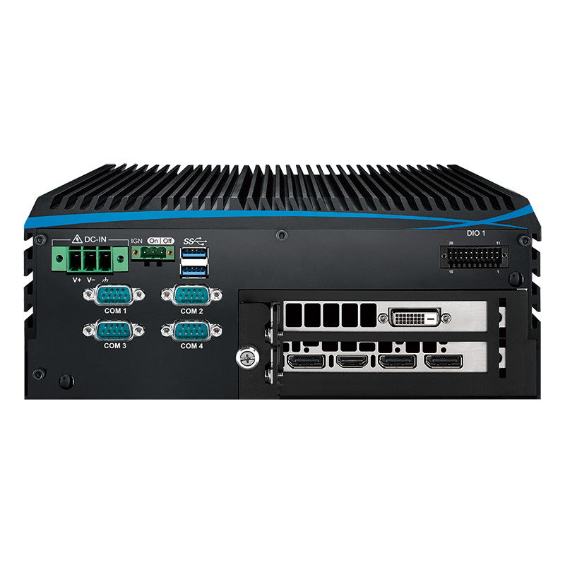 ECX-1300-RTX2070 Встраиваемый компьютер (Intel XEON / Core i7/i5/i3 Processors 8-gen (Coffee Lake-S) Socket 1151, Видеокарта Geforce RTX 2070, VGA, 2xDVI-D, HDMI, 5xDisplay Port, 2xGLAN, 6xUSB3.1 + 1xUSB2.0 внутренний, 4xRS232/422/485 (ESD 8KV), 4xSATA (RAID 0,1,5,10), 2x mSATA, M.2 Key B Socket, 3xSIM, CFast, 2 слота MiniPCIe, 32 DIO с изоляцией, 4 корзины для накопителей 2.5" с горячей заменой, питание 24...36В DC, расширенный диапазон температур -20...+45)