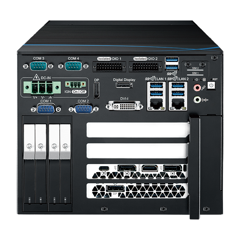 RCX-1421FR PEG Встраиваемый компьютер (процессор 8rd Gen Intel Core i7/ i5/ i3 Socket 1151, ОЗУ до 128Гб DDR4, Display Port, HDMI, DVI-I (не работает с VGA), 2xGLAN, 6xUSB3.1 + USB2.0 (внутренний), 4xRS232/422/485, 4xSATA (RAID) + 2x mSATA, 2xSIM, 2 слота MiniPCIe, 1xPCI, 1xPCI-Ex4, подготовка для установки дискретной видеокарты NVIDIA Tesla/Quadro/GeForce, 16xDI/16xDO с изоляцией, 4 отсека для накопителей 2.5" с горячей заменой, питание 24...36В DC, расширенный диапазон температур -25....+45)