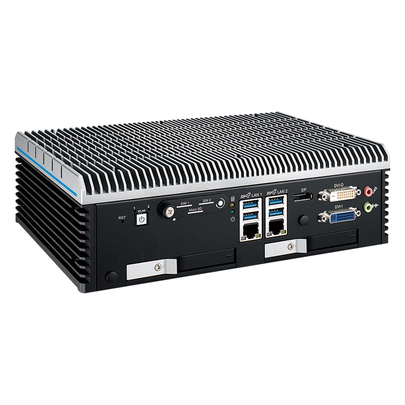 ECX-2000-4R Безвентиляторный встраиваемый компьютер (Intel XEON / Core i9/i7/i5/i3 Processors 10-gen (Comet Lake-S) Socket 1200 с TDP до 65Вт, Display Port, DVI-I, DVI-D, 4xGLAN, 6xUSB3.2 1xUSB2.0 внутренний, 4xRS232/422/485 (ESD 8KV), 2xSATA (RAID 0,1), mSATA, M.2 Key M Socket, 2x Nano SIM, Micro SD, 1 слот MiniPCIe, 2xM.2 (1xKey B+ 1x Key E), 16 GPIO, 2 корзины для накопителей 2.5" с горячей заменой, питание 9...50В DC, расширенный диапазон температур -40...+75)