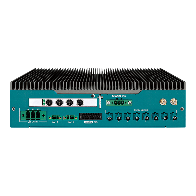 EAC-5000-R32 Встраиваемый безвентиляторный компьютер (AI Computing System), процессор 8-ядерный Arm Cortex-A78AE v8.2 64-bit CPU, ОЗУ 32Гб (предустановлено), 1792-ядерный NVIDIA Ampere GPU c 56 тензорными ядрами, 2x NVDLA Engines, eMMC 64Гб, 2xGigE LAN, 5xUSB 3.1, 4xM.2, 2xRS-232/422/485, 2xSIM, 8xGMSL, 2xCAN Bus с изоляцией, 2xDIO с изоляцией, 1xPCIe x8, расширенный диапазон температур -20...+70